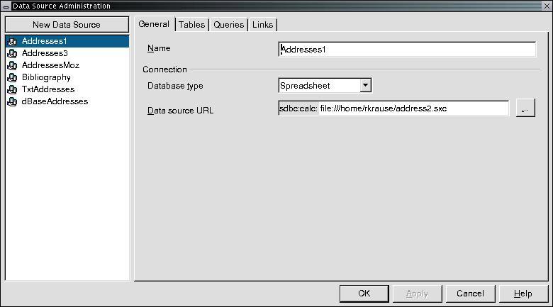 Click on the Text tab and put a check next to Text Contains Headers. Select the appropriate data field separator (tabs in this case) and the extension that you used for the text file. Click on the Tables tab and put a check mark next to the text file containing your address data, then click OK. Match OpenOffice.org's address fields with the headings in the first line of your text file, the same way as you would with spreadsheets, and click OK.