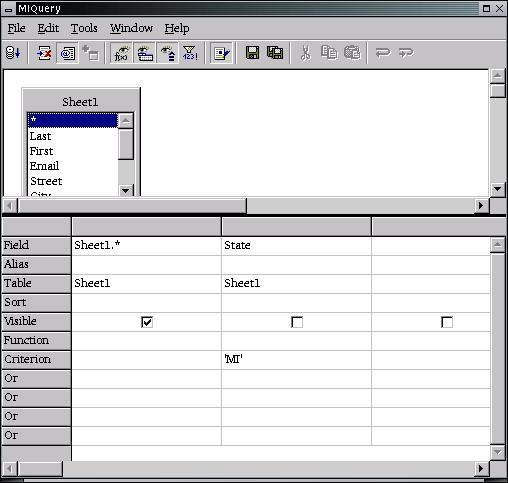 To use this feature, open the Data Source Administration window (see Figure 6) by clicking Tools -> Data Sources. Select the database you wish to use, and then click on the Queries tab. Clicking on the New Queries button will bring up a SQL statement builder window (see Figure 7). This window allows you to build a query and run it to see its results. Make sure you include all the fields in your query that you will insert into your letter. Once the query works as you would like, you can save it with a descriptive name and use it again.
