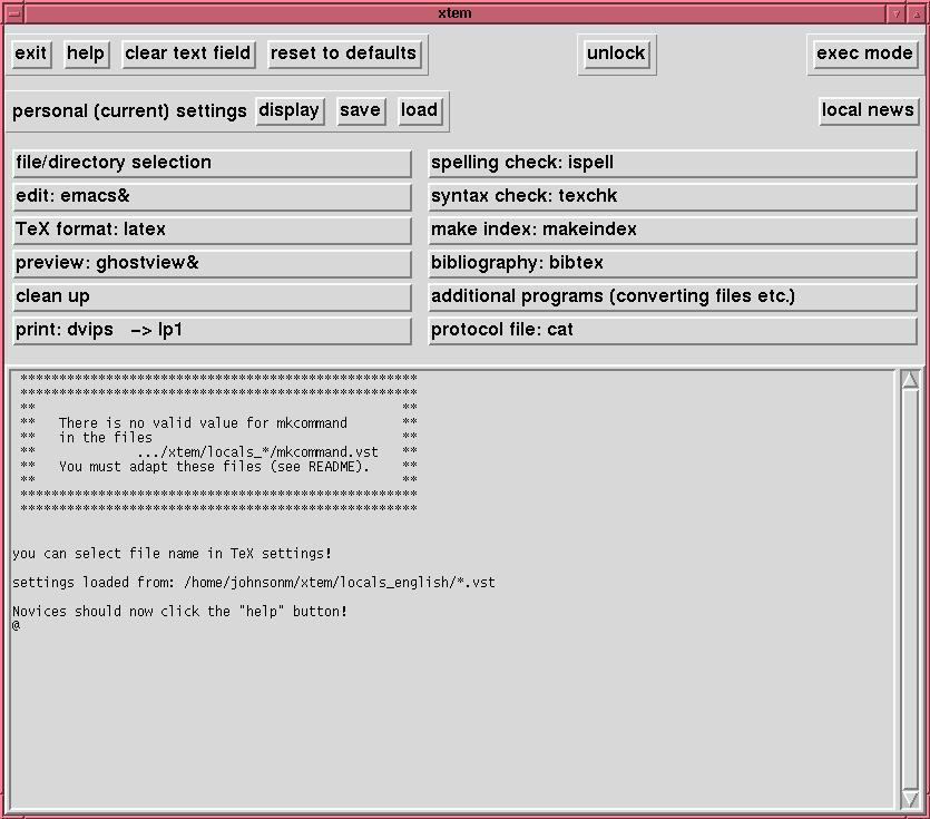 xtem a menu interface to TeX/LaTeX