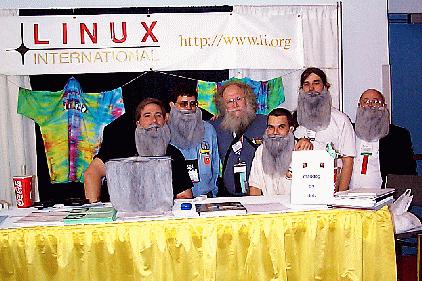 Pictured (from left to right) are Robbie Honerkamp, Steve Lewis, Jon “maddog” Hall, Greg Hankins, Antoni Dabed, and Reg Charney. Will World Domination be bearded instead of televised? These fellows seem to think so!