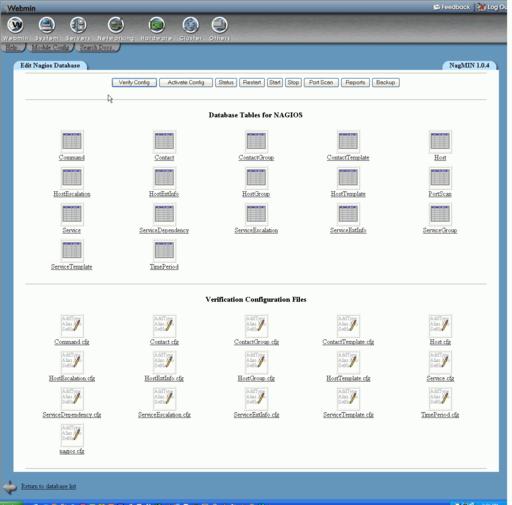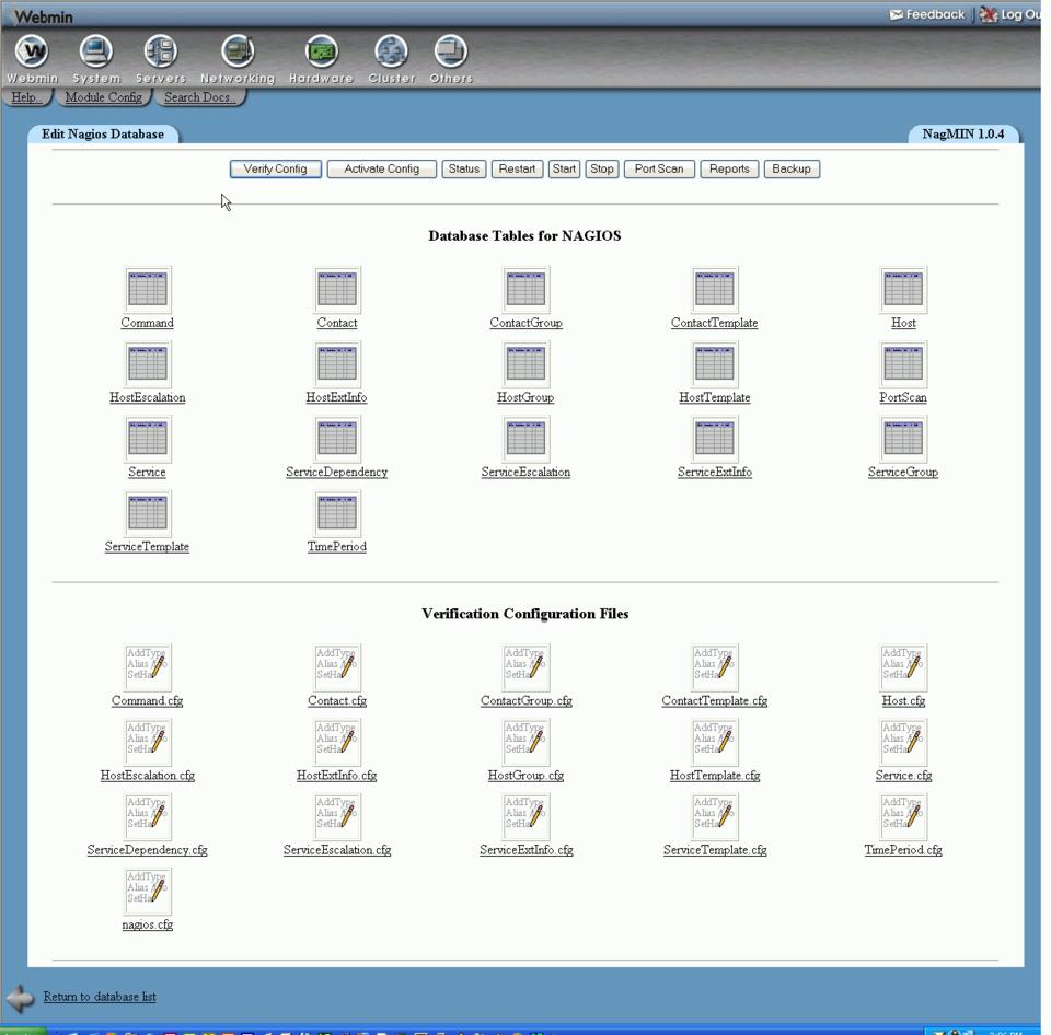That last statement brings up an interesting point: an add-on came out in March 2003, a Webmin plugin for Nagios (Figure 2), called NagMIN. Not only does it allow web-based configuration of Nagios, like Nagat, it offers a few things that nothing else has offered so far. First, it offers database support of the Nagios configuration files. Second, something quite useful if you are starting to set up your Nagios install, is the port scan feature (Figure 3). I have not tried out this feature fully yet, but it claims to perform a network discovery and turn what it finds into Nagios configuration files, saving you the trouble of having to enter all the data yourself. NagMIN should work with most systems, but the more-specialized monitoring most likely still has to be entered into the system by hand. If you would like more information about this plugin, go to the SourceForge.net web page.