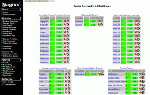We still had the financial constraint, which meant the OpenView class of products was out of our range. Because we were running NetSaint in a production environment, we decided to go ahead and start looking into a NetSaint solution for the Ag Division. The first thing I learned was if you stop following the Open Source community for a while, a lot will have changed when you come back. In this case, NetSaint was no more; its descendant is Nagios (www.nagios.org). For the most part, Nagios is the next step in the NetSaint evolution. I confess to some sadness seeing the penguin removed from the main page, but I got used to it and moved on.