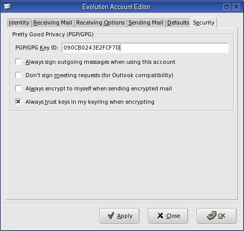 Figure 6. Specifying Your GnuPG Key in Evolution