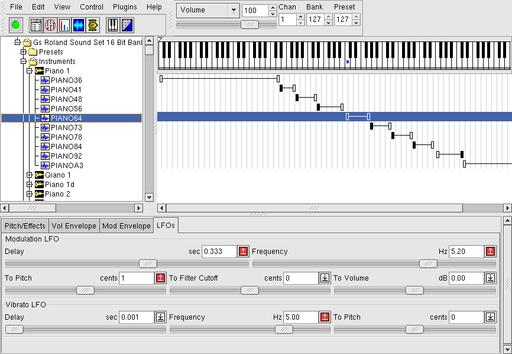If you want to work with soundfonts, you definitely want Josh Green's excellent Swami in your toolkit. Swami is a soundfont-only editor with a well-designed GUI and a wealth of useful features. You can edit existing soundfonts and create your own from the level of individual samples up to the composite instrument. You also can edit and design your own soundfont banks. Other tools are available for setting an instrument's velocity response curves, keyboard zoning (mapping) and modulator routing. Because of Swami's strict focus, I don't have much more to say about it; it is first-rate and is highly recommended Linux audio software.
