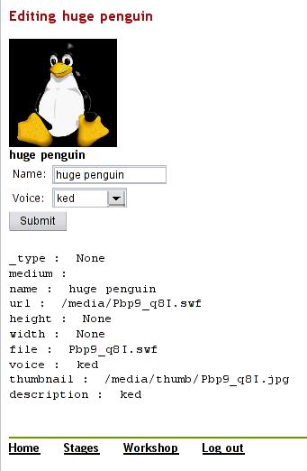 Choose the http://localhost:8081/admin/edit/avatar/ link from the workshop and click the name of the relevant item to edit an existing avatar. The appropriate dialog (Figure 4) leaves you with two options, to change the item's name and voice.