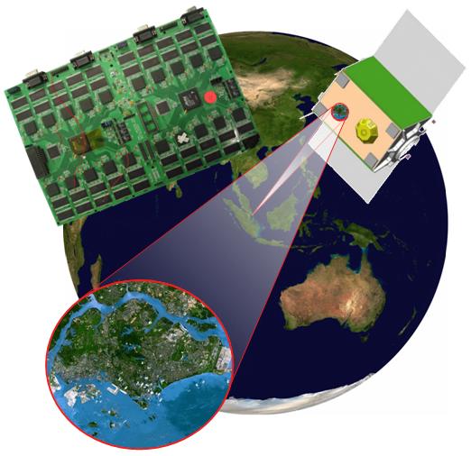 So, what is the PPU supposed to do after launch? Even though the hardware costs are almost insignificant with respect to the overall satellite budget, with a launch price of approximately 10,000 US$/kg, each gramme has to be strongly justified. Right now, the most essential PPU task is image compression using a content-driven JPEG2000 scheme. But the major advantage of the PPU is its “standing watch” capability, in which the camera continuously monitors the Earth with image data evaluated and discarded immediately if it's not valuable. In case of detecting valuable information, which is under software control, the obtained scene is kept for subsequent transmission. But even more important, X-Sat can transmit the results of its findings instantaneously to mobile terminals on the ground—each the size and price of a conventional transistor radio. The implications of such a concept are understood easily if, for example, such a system was in place when the earthquake northwest of Sumatra, Indonesia, created a tsunami wave killing more than 285,000 people on Boxing Day 2004.