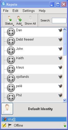 Figure 6. Kopete works well with the Windows Live Messenger service but currently lacks XMPP support on Windows.