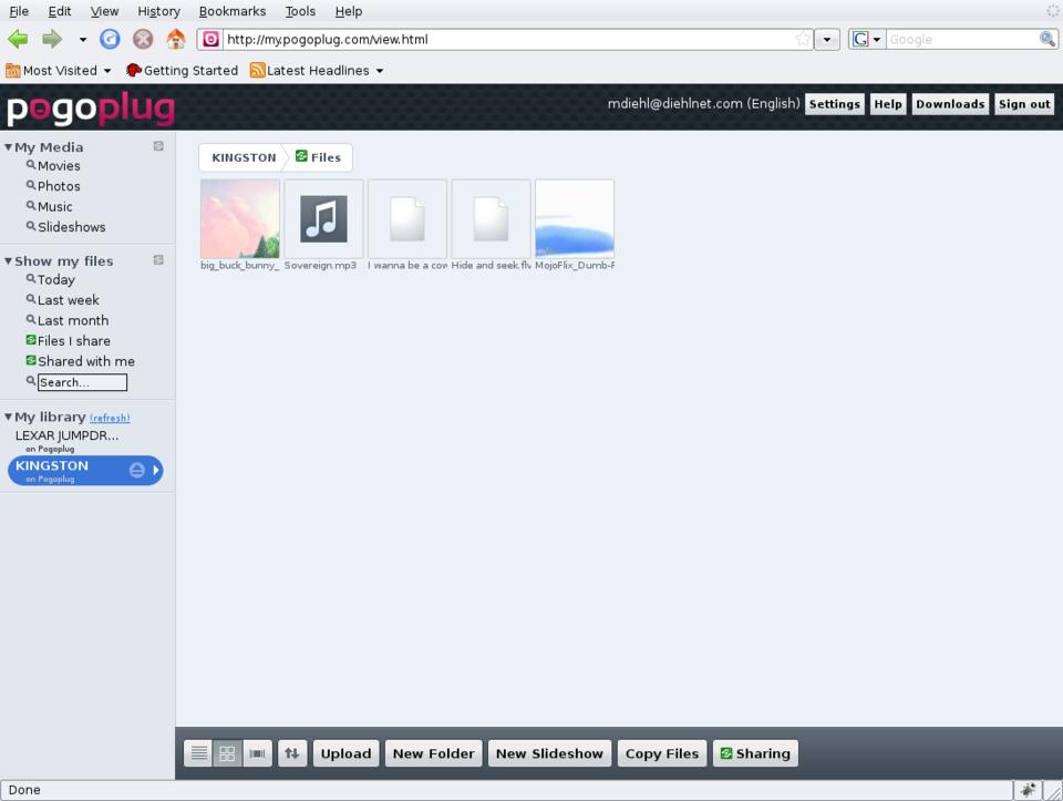 Overall, I think the Pogoplug is a neat little device, but it does have some negatives. I was really hoping to be able to plug in my digital camera and have the Pogoplug recognize it as a regular USB hard drive and publish my pictures. This would have been a great way to offload photos and make them available to friends and family in one operation. Alas, that didn't work, but it probably has more to do with my camera than the Pogoplug. When I pulled the memory card out of the camera and put it in a USB card reader, it worked like a charm.