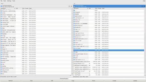 Pressing Tab changes between the left and right panes, but unlike NC and its clones, each pane can have another tab added onto it, bringing this style of design ethic firmly into the 21st century. Something that seems to be missing in the Midnight Commander that I took for granted in NC is the ability to jump between the starting letters of filenames with two keystrokes (this saved untold amounts of time). Thankfully, this is featured early on and works well. Just press and hold Alt followed by whichever letter you're searching for, and you quickly can navigate inside huge lists of filenames with ease.