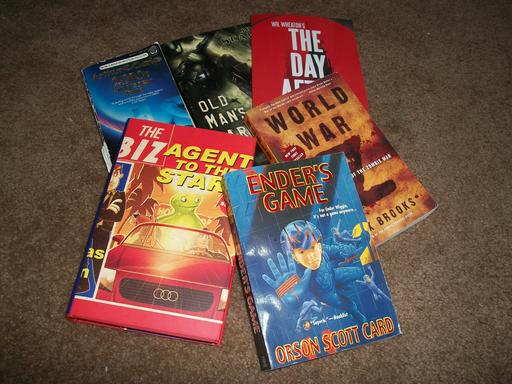 At the very least, it's nice to keep track of your books. Alexandria makes adding books a snap, and most of the time it even automatically downloads cover art for you. You can go from a pile of dead trees (Figure 1), to a window full of perfect pixels (Figure 2) easily.