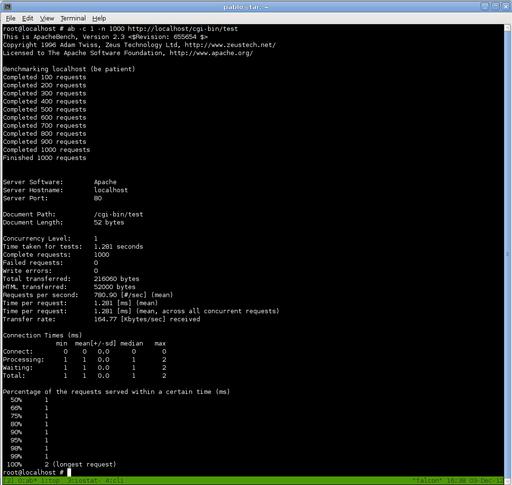 ab -c 1 -n 1000 http://localhost/cgi-bin/test