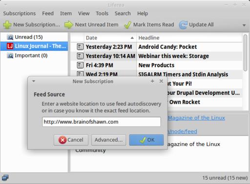 Tons of other RSS clients work very well under Linux—Akregator, Thunderbird, RSSOwl and many others. I specifically mention Liferea because of its ability to sync with Tiny Tiny RSS, but plenty of perfectly usable RSS readers are available. Check apt-get or your distro's equivalent for “RSS” and you should find several.
