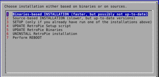 $ cd RetroPie-Setup $ chmod +x retropie_setup.sh $ sudo ./retropie_setup.sh