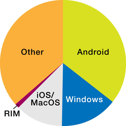 Figure 3. 2013 Device Shipments by Operating System Source: Gartner. Includes PCs, Tablets, and Phones (www.gartner.com/newsroom/id/2408515)