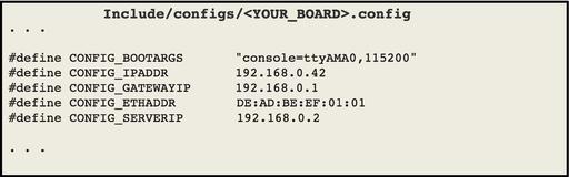 Every U-Boot binary has a default built-in environment of its own (Figure 2a). During compilation, a character array called default_environment is embedded into the U-Boot image. This character array stores the environment variables as a list of null-terminated strings with a double-null terminator. The contents of this array are populated conditionally based on the config options selected for your board. Environment variables that are commonly used can be enabled by defining the corresponding CONFIGs in your board's config file (include/configs/<YOUR_BOARD>.h). Figure 3 lists some commonly used options, which, once defined, would make their way into the default environment of your board.