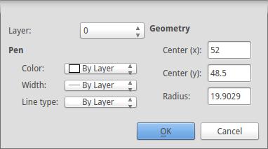 Using these tools, however, isn't very intuitive. Say you want to scale an element of your drawing. The first thing you will want to do is to click on the Modify→Scale menu item. You next will notice that the command-line box at the bottom of the window has changed, asking you to “Select to scale”. You then need to click on the element you want to scale, say a line element, and press the Enter key. The command-line window then will change to saying “Specify reference point”. LibreCAD scales based on a reference point to act as a point of perspective, so go ahead and click on a point. This will pop up an option window where you can set things like the scaling factor and whether it is isotropic (Figure 6). When you click OK, LibreCAD will apply the modification and refresh the drawing.