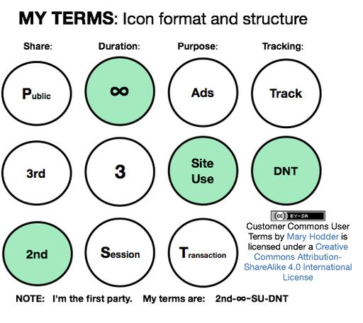 8. Customer Commons user-submitted terms is intended to do for individual terms what Creative Commons did for copyright licenses. Figure 4 shows one straw man proposal, drawn originally on a whiteboard at VRM Day in October 2014.