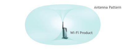 It would be simple if Wi-Fi signals came out of the access points in a big sphere, like a giant beach ball of signal. Unfortunately, that's not how it actually happens. Whether you have internal antennas or external positionable antennas, the signal is “shaped” like a donut with its hole over the antenna (Figure 1). While it still partially resembles a sphere, it's important to note where the signal isn't. Namely, there's a dead zone directly at the end of the antenna. If you've ever considered pointing the antenna at your distant laptop, trying to shoot the signal out the end of the antenna like a magic wand, you can see why people should leave magic wands to Harry Potter.