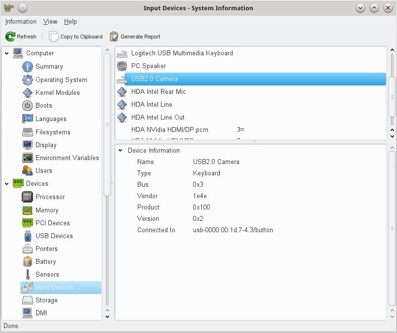 Now, let's move on to some other commands. lsusb provides information on all USB-connected devices; see Listing 2 for an example. (An alternative is usb-devices, but it's somewhat more obscure in its output and has no configuration options.) As in most modern computers, you'll probably have a lot of such devices. In my case, I have a Bluetooth dongle, Webcam, keyboard, mouse and more. You can get information on a specific bus or device with the -s option or select a given vendor with the -d option; for the latter, check the USB ID repository (see Resources) for vendor/device numbers. Finally, if you want very detailed information, try the -v (verbose) option, but be prepared to read a lot. For my machine, lsusb -v produces more than 1,300 lines of output.