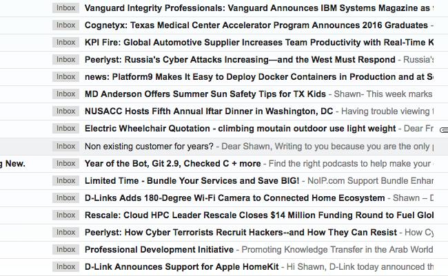 I feel a little weird sharing to a large audience the best way to get my attention when trying to pitch an idea or project. Still, the amount of ineffective email I get on any given day is overwhelming, so maybe it will be for the best. (See the screenshot, that's from yesterday afternoon.)