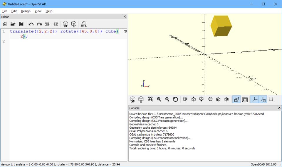 translate([2,2,2]) rotate([45,0,0]) cube(2);