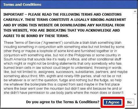More formal are the legal agreements we call terms. We encounter these every time we click “agree” to something that looks like what is shown in Figure 2.