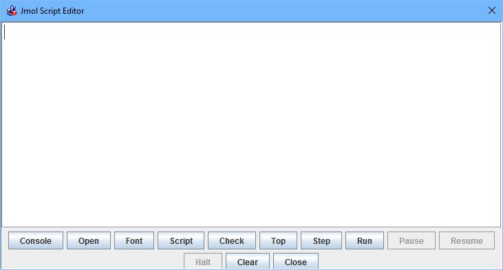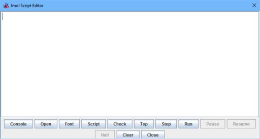 You also can use scripts interactively by clicking the File→Script Editor menu item. This pops up a new window where you can write your script, check its syntax and then run it within Jmol. This provides a huge amount of power, allowing you to get the exact type of analysis you need.