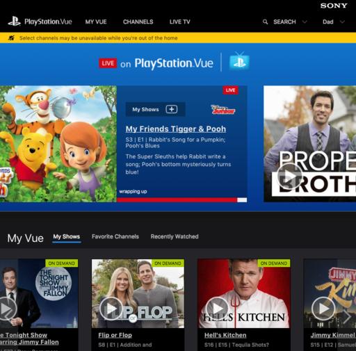 Figure 2. PlayStation Vue is remarkable, until it's not. The video quality is amazing, and the DVR is superb. The geolocation frustrations along with PS4 console problems make it difficult to love.