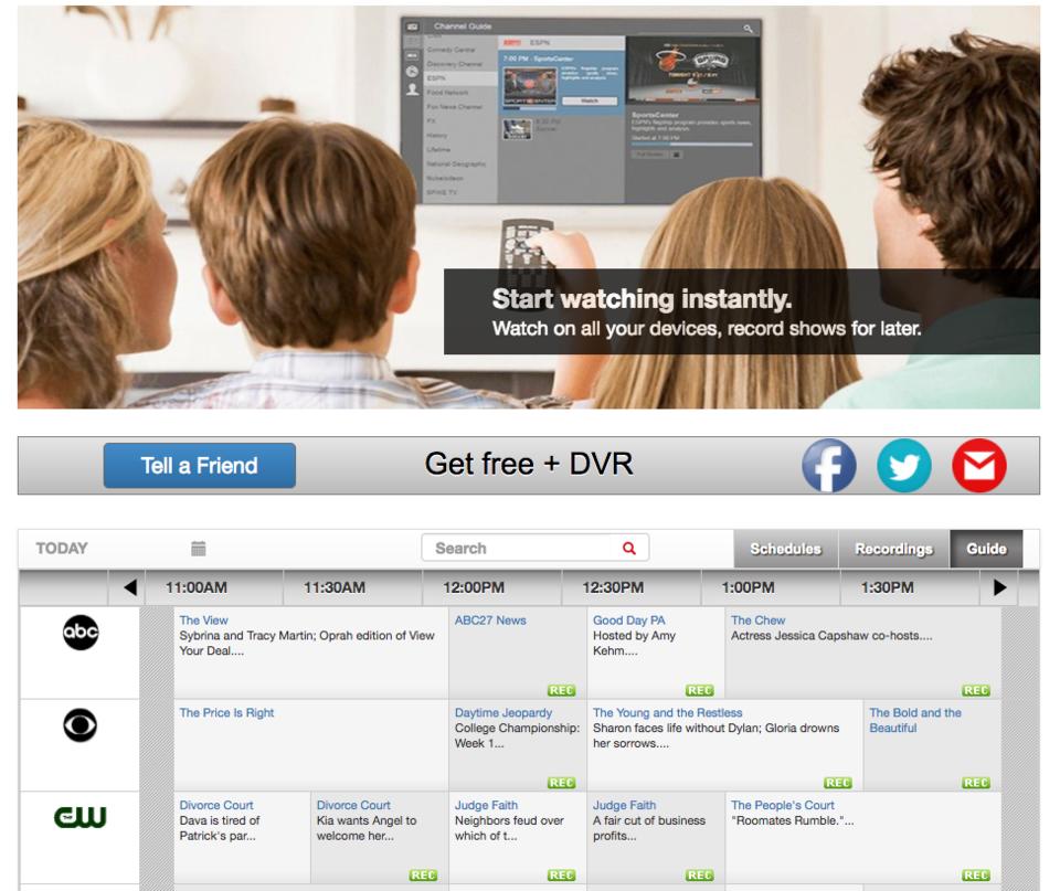 Although the slightly higher price seems frustrating, the technology included might make up for it. Not only can you stream to five devices simultaneously, but it also provides “Cloud DVR”, which automatically stores recorded content for you. All you need to do is mark a program as a favorite, and all episodes are saved for 30 days. It's not possible to schedule a timed event, but the DVR feature is extremely nice, and it provides a far better experience than the live-only Sling TV.