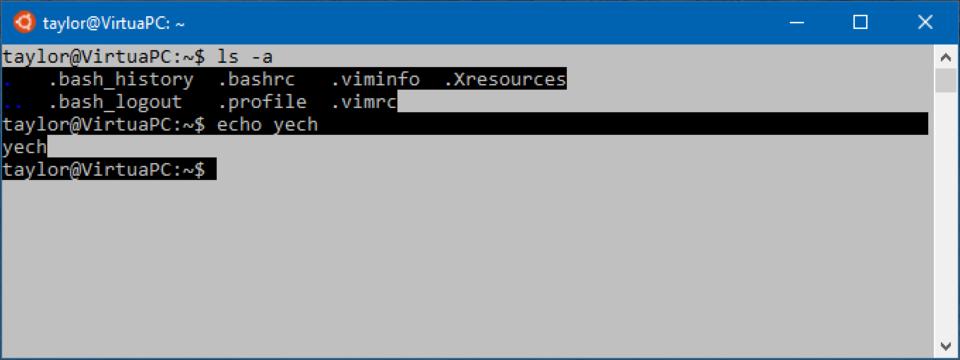 Ubuntu or Microsoft, someone has set it so that “white” is actually a very light grey, so the results are quite attractive. The problem is, run a command that knows how to output in color, and things get pretty broken pretty fast, as you can see in Figure 3 when I tried an ls -a.