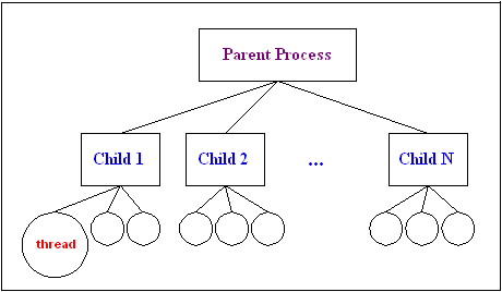 A single control process launches the number of child processes indicated by the NumServers directive at server startup. Each child process creates threads as specified in the StartThreads directive. The individual threads then listen for connections and serve them when they arrive.