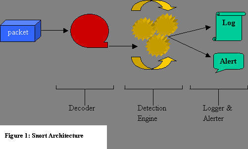 The Snort architecture consists of three principal components. A simplified representation of these components is shown in Figure 1. They are described below: