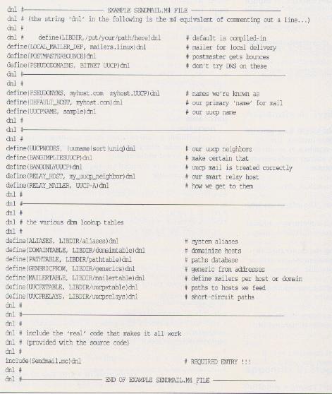 A m4 file for a minimal configuration (UUCP or SMTP with all non-local mail being relayed to a directly connected smart-host) can be as short as 10 or 15 lines excluding comments.