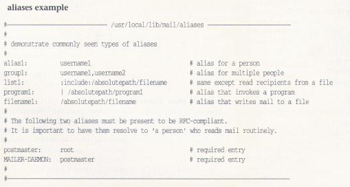 All systems require aliases for Postmaster and MAILER- DAEMON to be RFC-compliant. Always be extremely aware of security when defining aliases that invoke programs or write to programs since sendmail generally runs setuid-root.