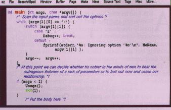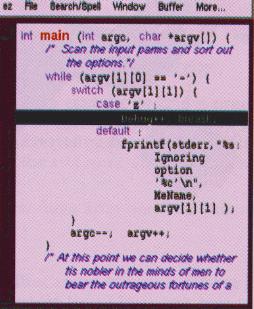 Now another package has been released, auis63L0-src.tgz, to sunsite.unc.edu in /pub/Linux/X11/andrew. This is a set of additions to the word processing package to support the programmer. This article will describe the support ez provides to ease the coding and analysis of our programs. Future articles in Linux Journal will describe other pieces of AUIS.