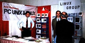 ACC Bookstore and Morse had many products and publications about Linux displayed on their table and shelves, including a system demonstrating Abacus Software's MacEmulator for Linux, which had just been announced three days before COMDEX opened.