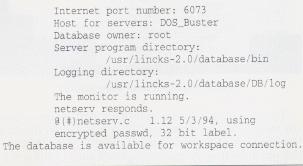 The dbstat utility is used to check for a running database server (monitor and netserv). dbstat connects to the netserv and monitor processes and returns some status information, as shown in Figure 1, dbstat