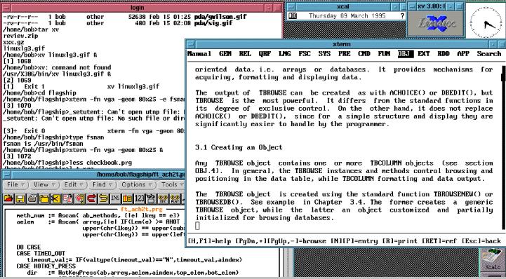 None of these products are available for Linux, although there has been at least one effort to make the SCO version of dBASE V work with iBCS. What we have instead is FlagShip from multisoft Datentechnik GmbH and dBMAN from Versasoft Corporation. Both of these products run on several implementations of Unix; dBMAN also runs on MS-DOS.