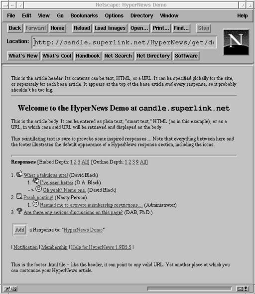 Figure 1. A Prototypical—if Uninspiring—HyperNews Base Article