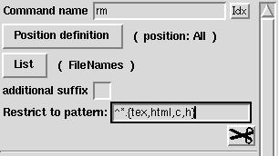 • Restrict rm to ^*.{tex,html,c,h}.` This means that you cannot complete rm to a .tex, .html, .c or .h file. I've done that a few times, when I wanted to delete a file called important.c~. Since the file important.c existed, TCSH completed only to that name, and... I deleted the wrong file, because I was too quick.