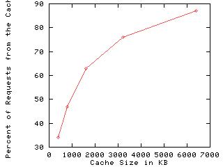 Figure 3. A typical curve of total cache size versus the number of requests satisfied from the cache.