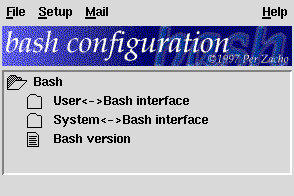 When you have selected a start-up configuration, the menu window is displayed (see Figure 2). In this window, you can travel through the configuration pages in the same way you would through a directory structure. If you select a page, a new window is displayed showing the configuration for this page (see Figure 3). This window is reused for all the configuration pages, i.e., only one configuration page is visible at a time, so you do not have to destroy the window yourself.