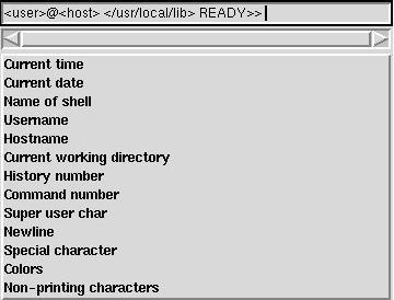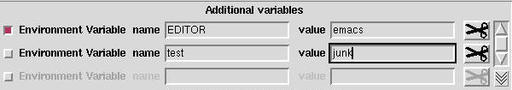 The ExtEntry is a container that repeats its elements, just as a list box repeats labels. A number of the elements in the ExtEntry may be visible on the screen at one time. The elements in the ExtEntry can be any of the widgets from TDG. An element in an ExtEntry is called a tuple. In Figure 4, you can see an ExtEntry from the tcsh module.