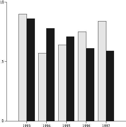 Now you have a fully level-1 compliant PostScript file less than 2KB is size that you can actually understand. I have seen PostScript files generated by applications under MS-DOS that need 2MB for the same picture. The complete Perl script and output PostScript are included in the gzipped tar file on the ftp site as Listings 4 and 5. The output histogram is shown in Figure 1.