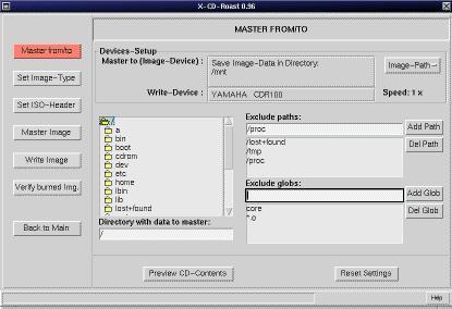 If you want to create a CD with your own files, you must first “master” the data. Collect all the files you wish to have on CD in a single directory tree mounted on your system. X-CD-Roast then converts this directory tree into a ISO-9660 CD image. Remember, this image will occupy about the same amount of space on your hard drive as your data to burn does. So, to master 600MB of data, you must have about 1.2GB of space. Finally, you burn this image on to a CD-Recordable.
