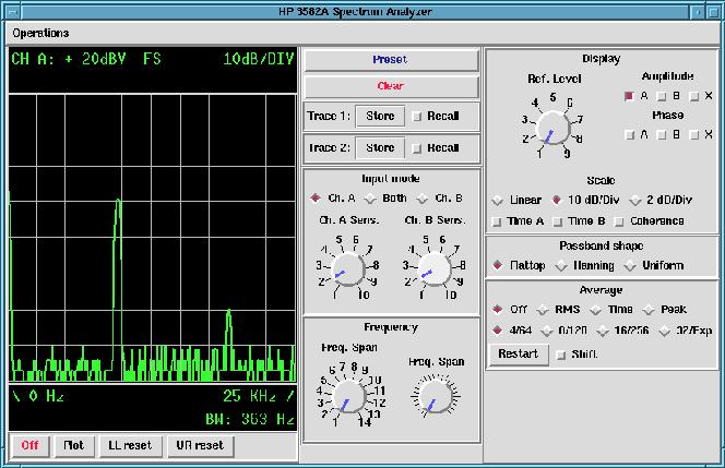 The bluffing worked out one hundred percent, and I held four aces in one hand and a full house in another. Stop? No way! It occurred to me that I could create a user-friendly interface to the HP3582A spectral analyzer using Tcl/Tk power.