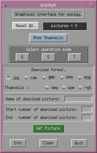 As a Tcl/Tk script, qvplaytk is very easy to configure and adapt. For example, you might like to change the obscure “G”, “S” and “T” buttons to “Get”, “Save” and “Take”.