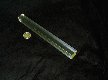 Figure 1. This photo shows one of the about 100,000 lead tungstate scintillating crystals which will be used in the electromagnetic calorimeter of the CMS experiment.