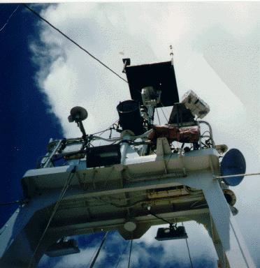 Figure 3. Forward mast installation of the RRS James Clark Ross showing some of the radiometers and the radar system.