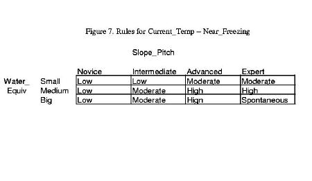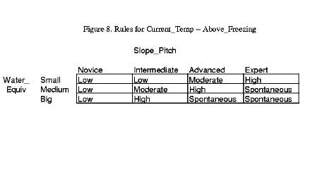 Just as for the fuzzy sets, the expert snow scientist must be consulted by the programmer in order to compose adequate rules. As with the fuzzy sets, experience with applying the model in the real world will most likely result in adjustments to the rules.